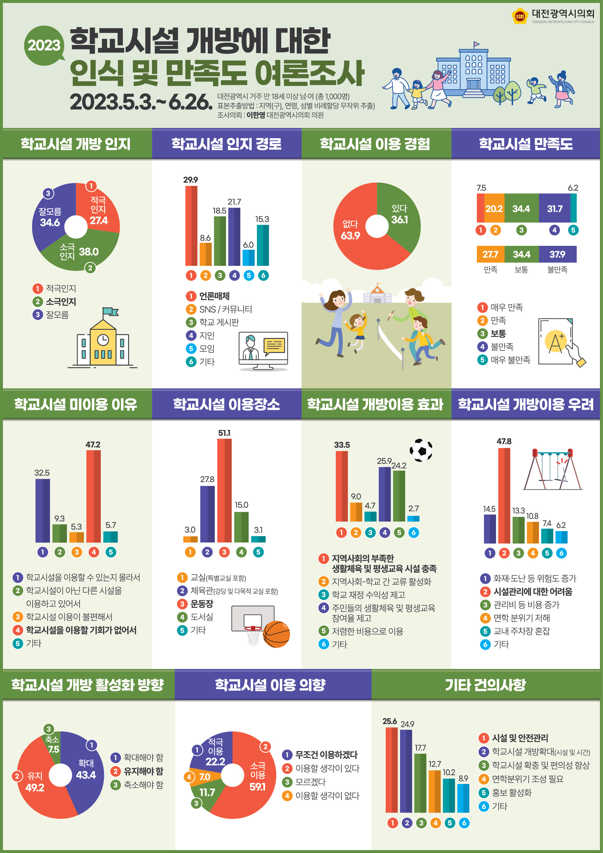 학교시설개방에 대한 인식 및 만족도 여론조사(인포그래픽)