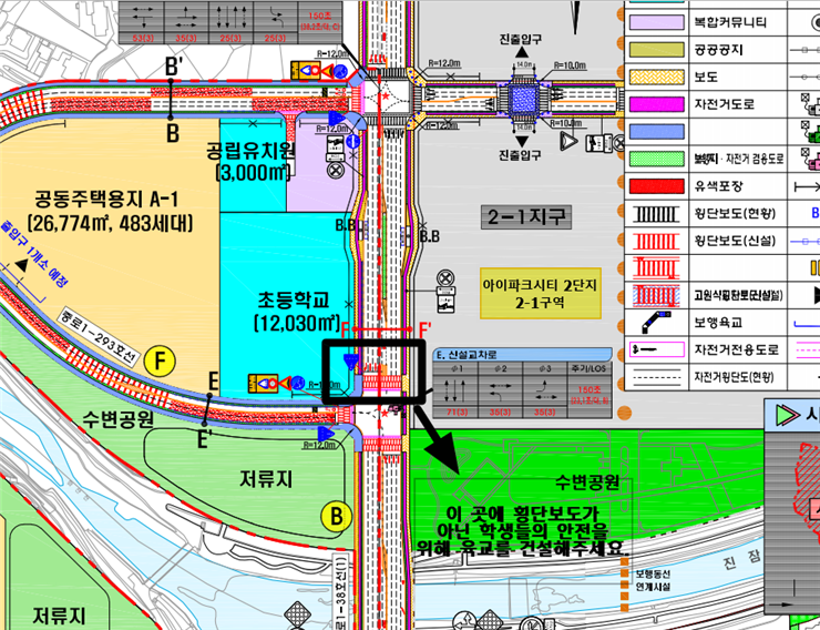 1. 우리 시의회 의정에 깊은 관심을 갖고 참여해주셔서 감사드립니다. 2. 귀하께서 제출하신‘대전 아이파크시티와 복용초 사이에 육교 건설 요청’민원에 대하여 검토결과를 회신 드립니다. - 회 신 내 용 - ○ 관련 부서(시 주택정책과)와 의견 수렴 및 협의한 결과 ○ 학생 안전을 위한 보행육교 건설요구 사항은 유성구청장 및 사업시행자 (유토개발1차, 2차)에게 실시계획인가 및 교통영향평가 등에서 안전한 통학 대책에 대하여 충분한 협의가 이루어질 수 있도록 검토 요구한 사항으로, ○ 『도안 2-2지구 도시개발사업』 관련하여 도시계획위원회 및 교통영향평가 심의 시 학생 통학 안전을 위한 육교설치 진정민원 요구사항에 대하여 설명하였으나 반영되지 않았음. ○ 최근 교통정책의 흐름상 차량의 소통보다는 보행자 안전을 위하여 차량의 속도를 낮추고 보행자의 안전확보를 위한 방향으로 교통정책이 추진되고 있으며, 육교 설치에 따른 무단횡단 등의 요인으로 기존의 보행육교도 철거하는 추세임. ○ 또한, 학생 통학 안전을 위해 인접도로상 어린이보호구역 설치 및 제한속도 지정, 안전시설물(옐로우카펫, 안전표지판, 미끄럼방지포장) 등을 설치하여 안전한 통학로가 확보될 수 있도록 조치하였음. ○ 기타 궁금한 사항은 시 주택정책과(☎270-6403) 또는 산업건설전문위원실(☎270-5131)로 연락주시기 바랍니다. 끝. |