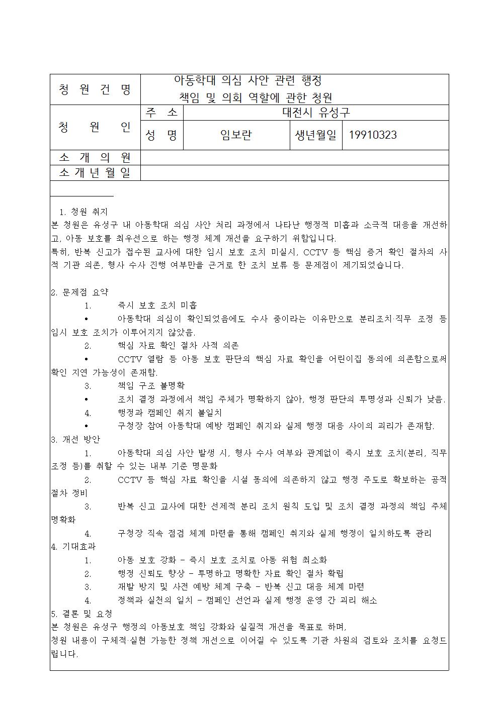 | 제목: 아동학대 의심 사안 관련 행정 책임 및 의회 역할에 관한 질의 임** 2025-12-15 10 | |